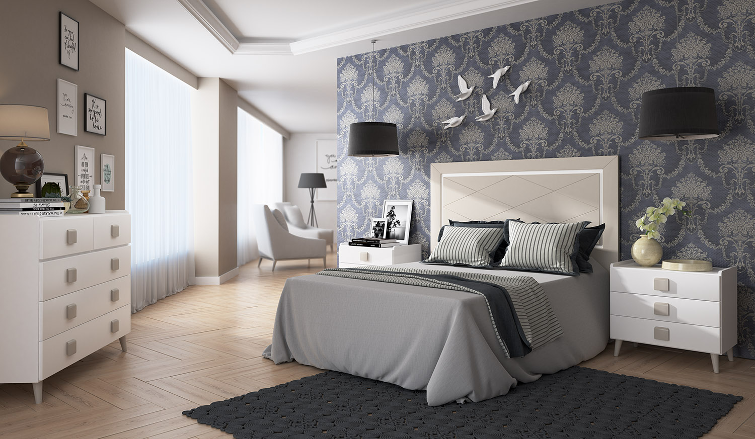 Dormitorio matrimonio MDF en lacado Blanco y piedra