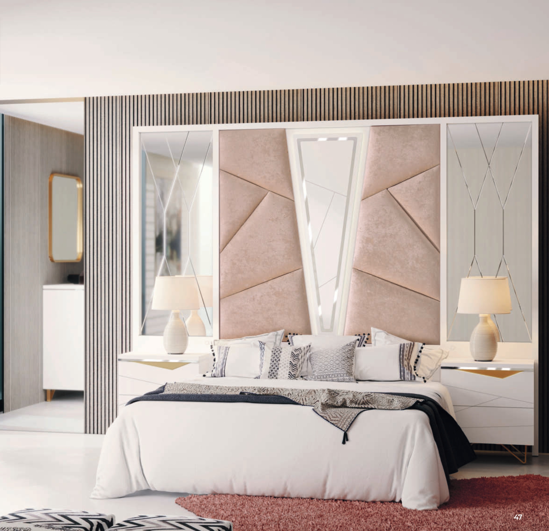 Dormitorio Tiffany 20 en Blanco Polar y Detalles Oro