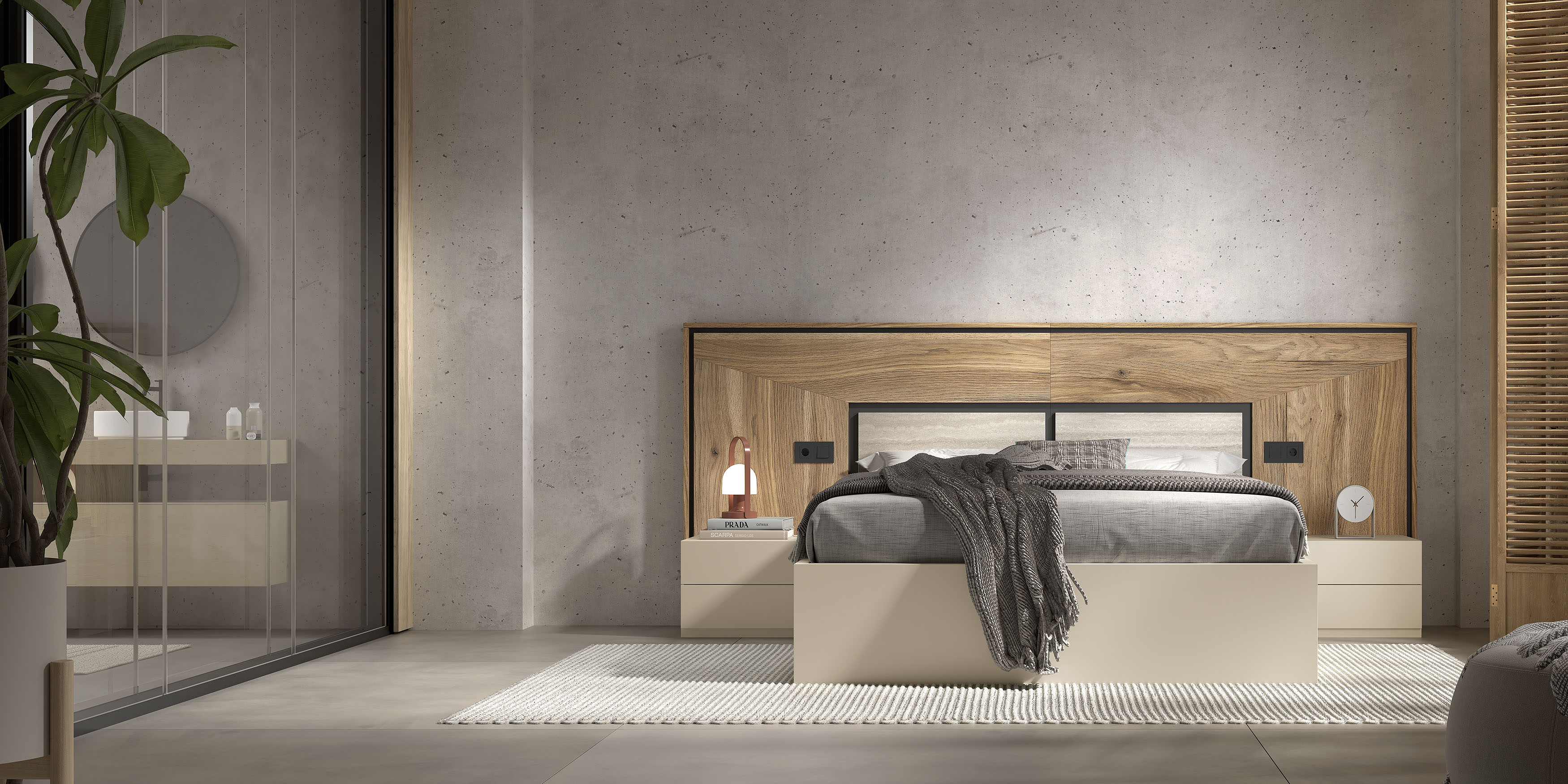 Dormitorio Noa 326 en Arizona – Arena – Grafito – Marmol travertino