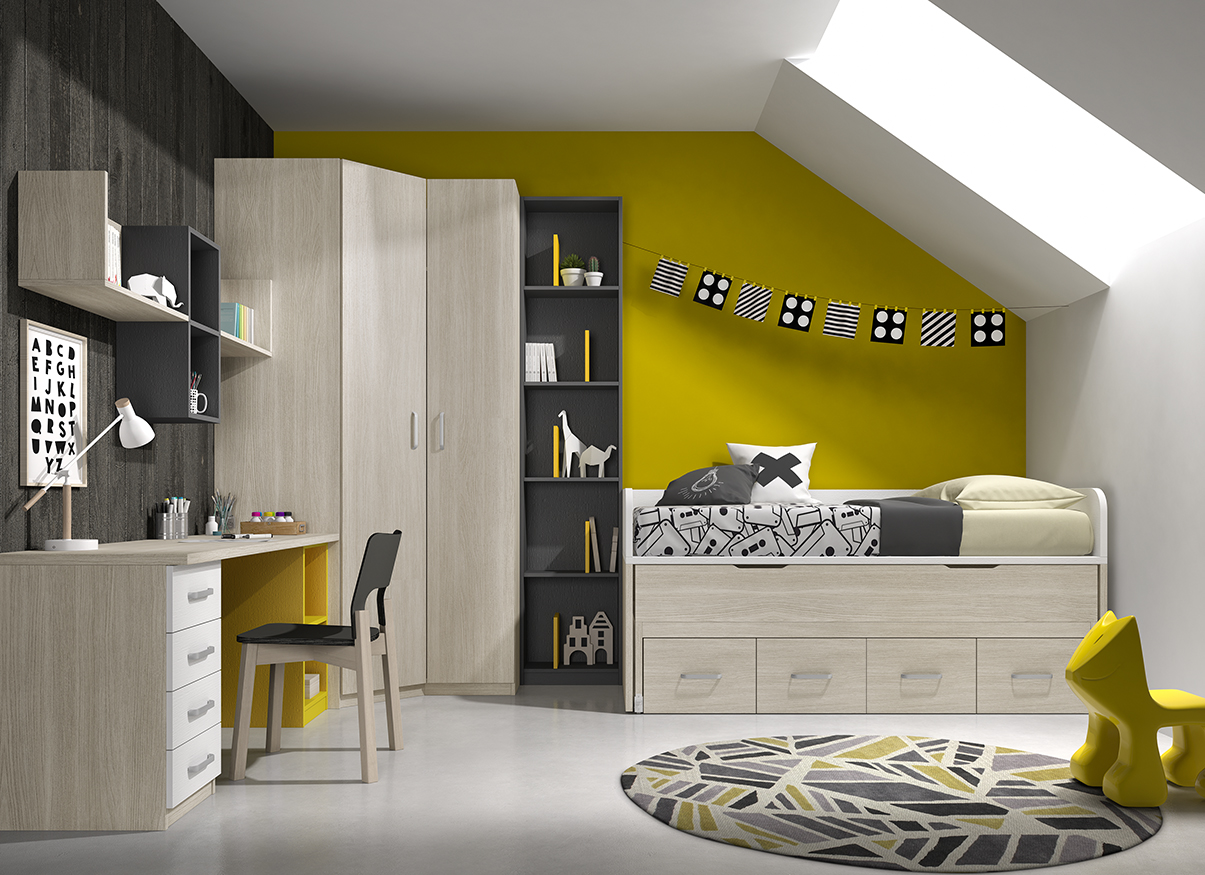 Composicion 306 en Nordico, gris, Mostaza, blanco