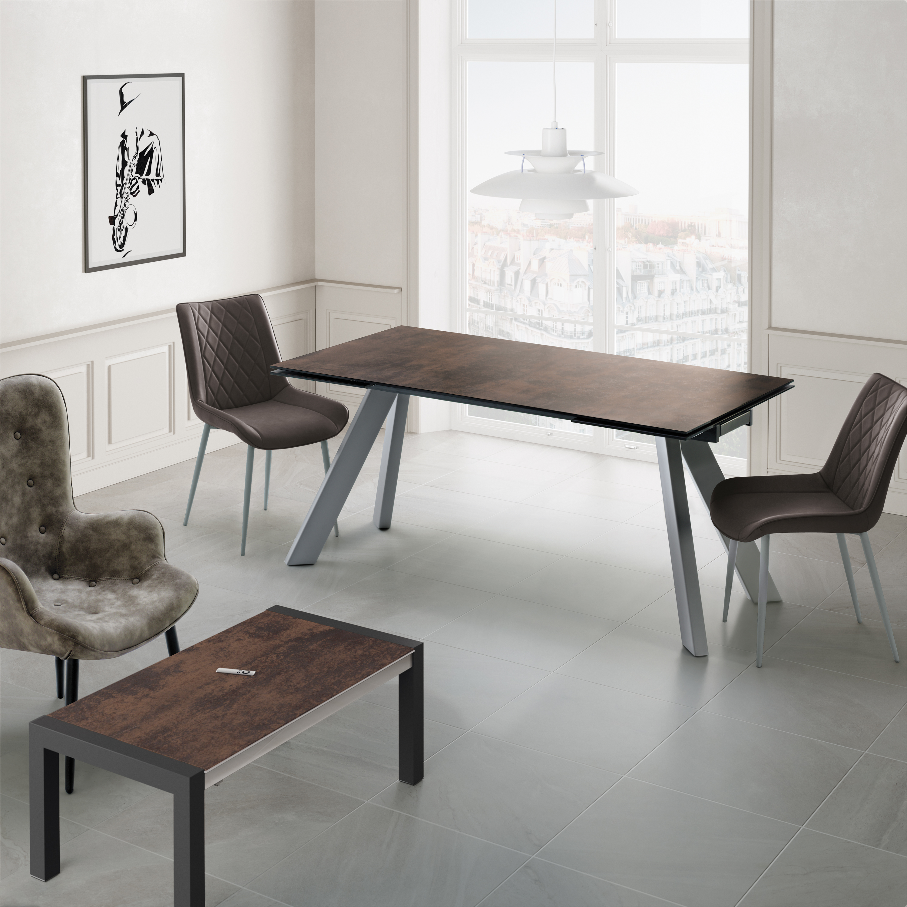 Posibilidad de pata X – V acero inox, blanco mate, negro mate, piedra mate, gris mate con tapa oxido