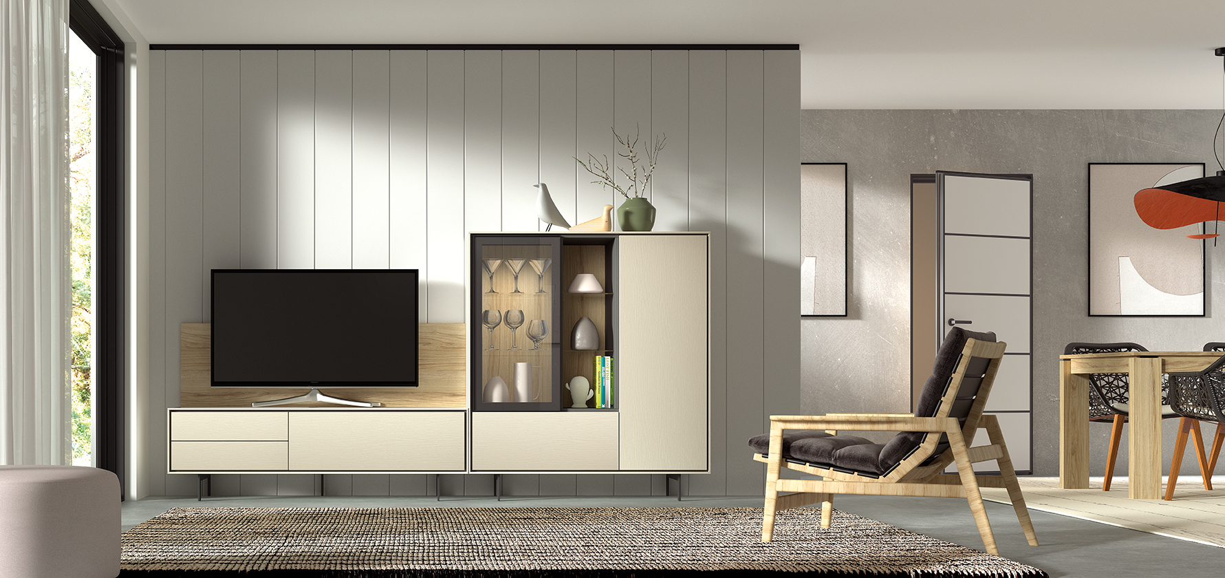 Composicion Iris 1 de 278cm en arena poro – grafito poro – roble alabama