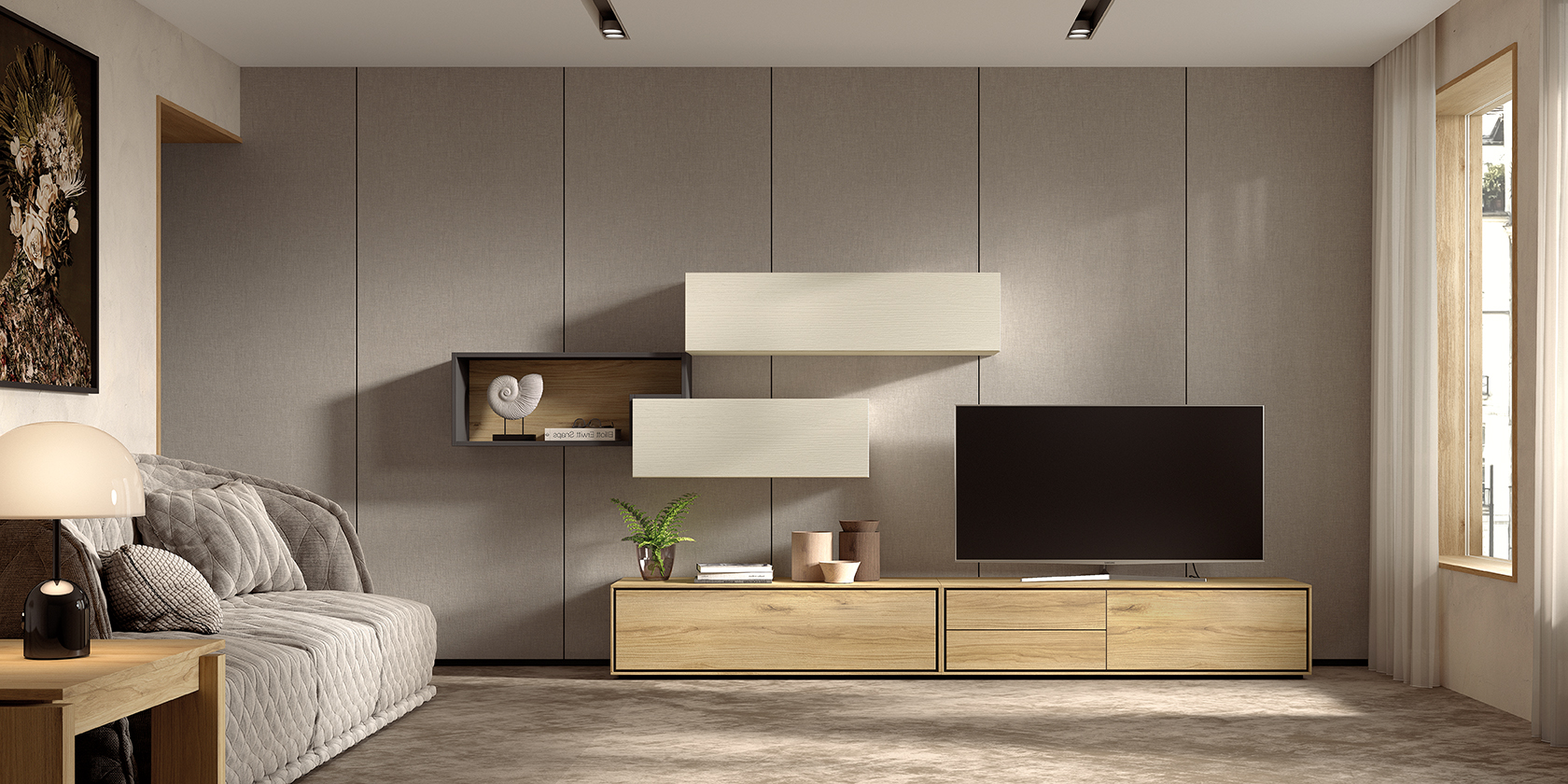 Composicion Iris 23 de 308cm en Roble Alabama – Arena Poro – Grafito Poro