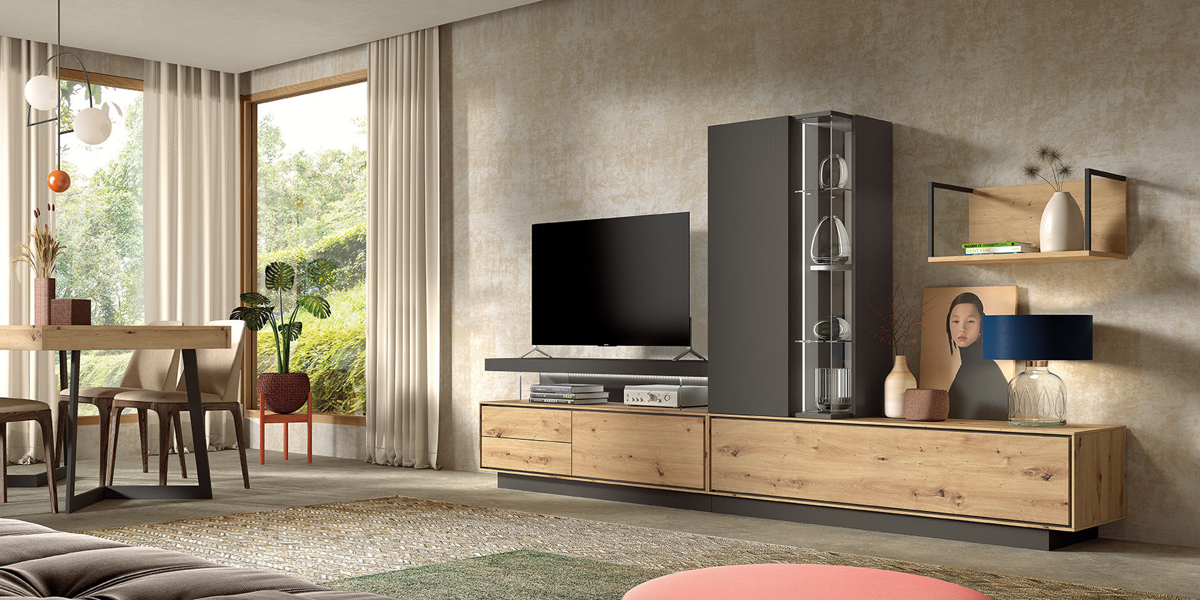 Composicion Iris 5 de 293cm en Roble Rustic y Grafito Poro