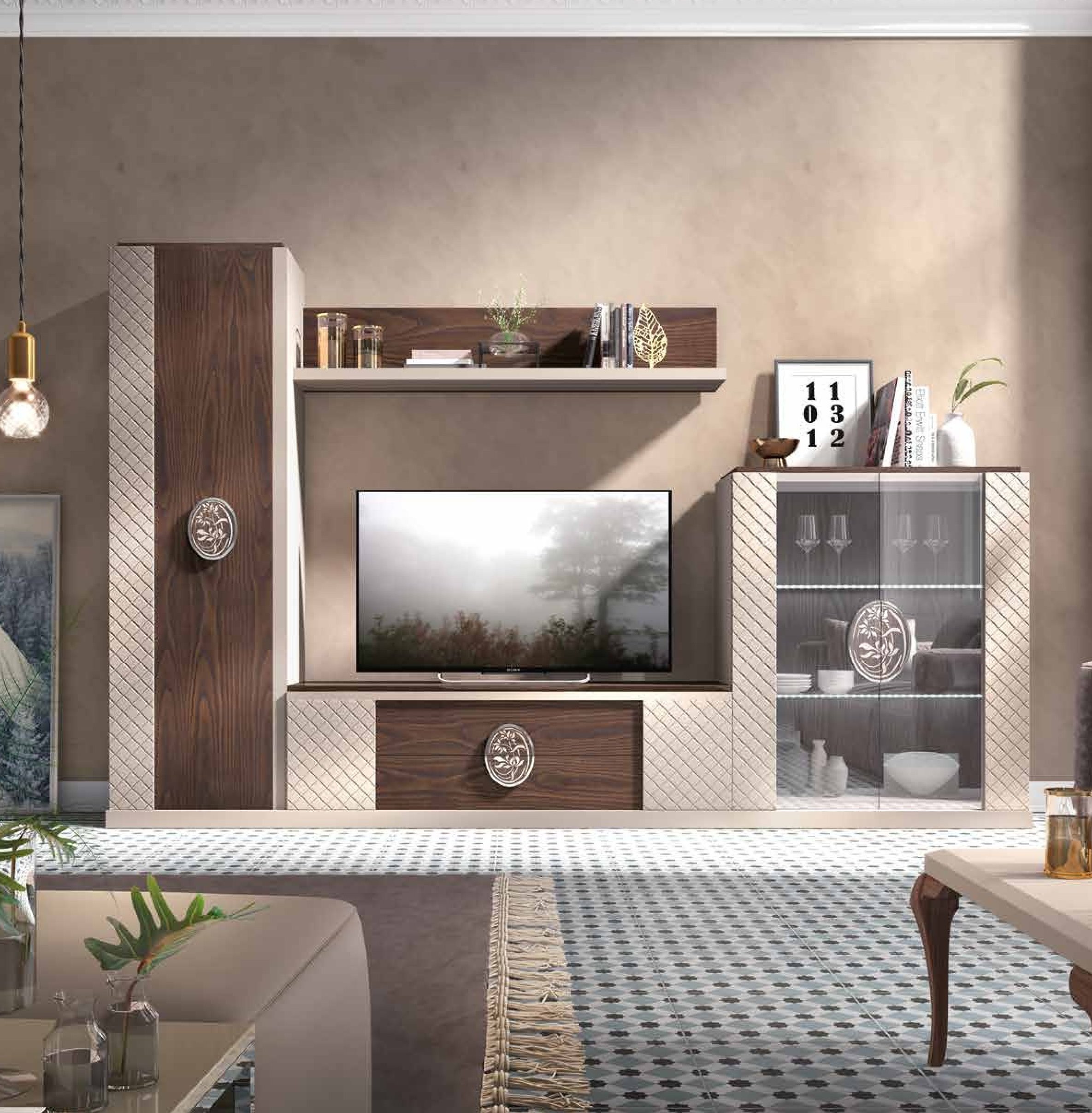 Composicion Lagon 04 en lacado vison combinado con frentes fresno color nogal