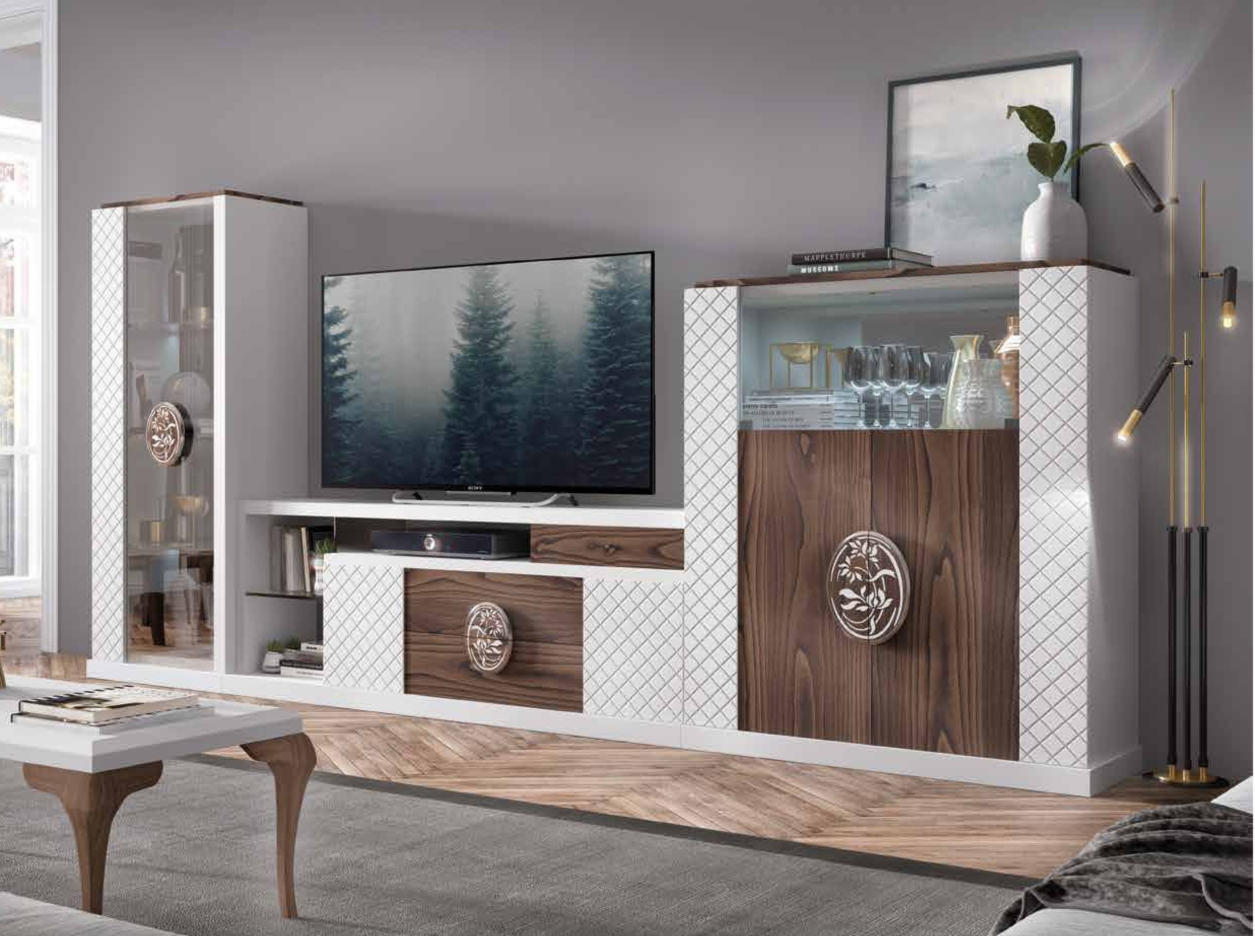 Composicion Lagon 07 en lacado blanco y chapa fresno color nogal