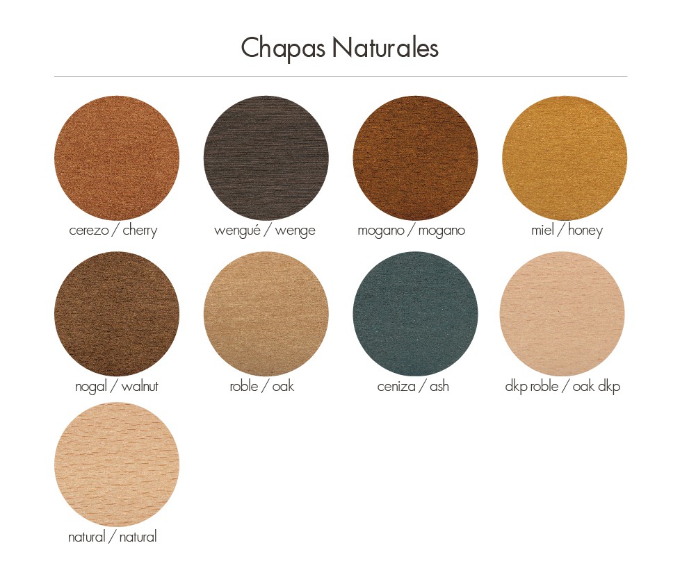 | Color | Ceniza, Cerezo, Lacado amarillo, Lacado azul, Lacado blanco, Lacado moka, Lacado naranja, Lacado negro, Lacado rojo, Lacado verde, Lacado violeta, Lacado vison, Miel, Natural, Nogal, Roble, Wengue |