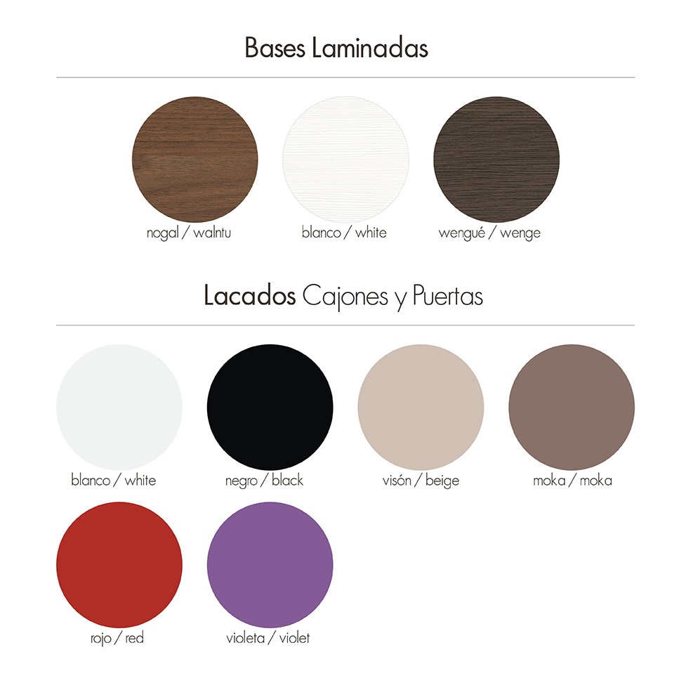 | Color | Melamina blanco, Melamina nogal, Melamina wengue |